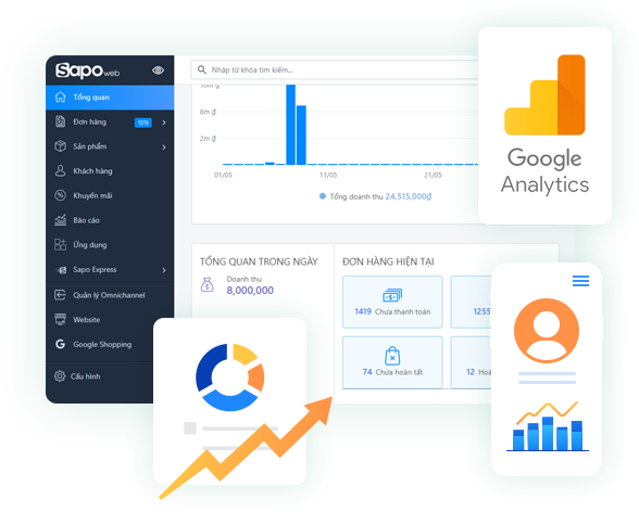 Nhờ việc tích hợp báo cáo Google Analytics vào website Sapo Web, bạn có thể dễ theo dõi các thông tin như có bao nhiêu người truy cập vào website, họ truy cập vào từ máy tính hay mobile? Họ bao nhiêu tuổi ? Là nam hay nữ … ngay trên trang quản trị Sapo Web. Kiểm soát tốt các chỉ số trên, bạn sẽ dễ dàng đánh giá hiệu quả website đem đến cho việc kinh doanh của mình